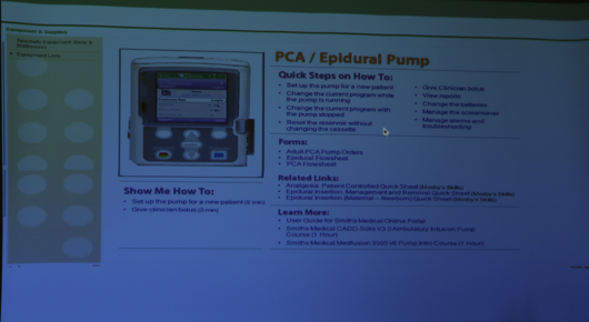 Tijdens de lunch verzamelde de Nederlandse delegatie zich bij de sessie van Molly Petroff over performance support. Molly werkt bij een groot ziekenhuis, Saint Vincent Health Center (zie de site van haar afdeling) en deelde haar ervaring in haar ziekenhuis. Wat me opviel was dat performance support voor hen niet een van de vele leerinterventies was maar het uitgangspunt voor het aanpakken van een klantvraag. Als voorbeeld: Er kwam een nieuwe pomp om medicatie toe te dienen. Eerder was er opleiding van 40 uur over gebruik en onderhoud van zo'n systeem. Het bleek dat het effect op de werkvloer erg beperkt was. De interne opdrachtgever vroeg om weer 40 uur instructie. In plaats daarvan heeft ze een Job Task Analysis en een Critical Skills Analysis uitgevoerd (zie deze prima blogpost over uitvoeren CSA bij performance support) waaruit bleek dat de hoeveelheid belangrijke inhoud beperkt was. Ze heeft gekeken wat er anders was aan deze pomp. In plaats van de expert hebben ze aan beginnende zorgverleners gevraagd om mee te denken. In plaats van 40 uur training is er een oplossing uitgekomen waarin mensen deelnamen aan 4 korte workshops, een korte online zelfstudiemodule en taakondersteuning via een EPSS. Bij de workshops werd ook het EPSS ingezet. Er werden ook vragen opgeworpen die mensen moesten beantwoorden met behulp van EPSS. In het systeem stond behalve de werkinstructie ook korte simulaties.