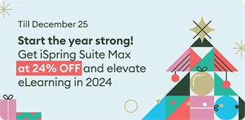 As we transition into the new year, iSpring wanted to give you something special to start 2024 on a high note. With our exclusive Holiday Deal, you can now get iSpring powerful authoring toolkit, iSpring Suite Max, at a whopping 24% off! That's just 730 € instead of the regular 970 €. This offer will only last up until December 25. So, don't miss out on this opportunity to save big and take your eLearning game to new heights in the new year! Here’s what you can do with iSpring Suite Max: